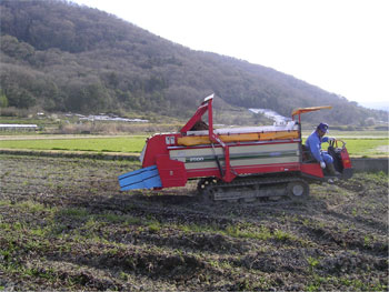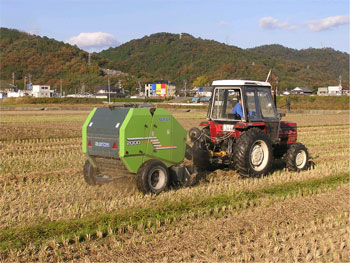 平成15年に浅野さんが中心となって町内肥育農家と「大井・肩脊粗飼料生産組合」を組織し,助成制度を活用して関係機械を整備,稲わら収集,堆肥散布を開始されました。