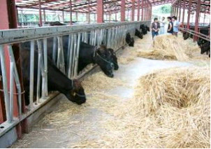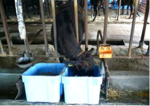 当センターの繁殖和牛を用いて,乳酸菌を添加した長わらサイレージの嗜好性を乾燥稲わらと比較しキャフェテリア法で調査しました。牛が乾燥稲わらと麦わらサイレージのどちらに先に口を付けるかと一定時間内(今回は30分)に採食した乾物量を比較する方法です。