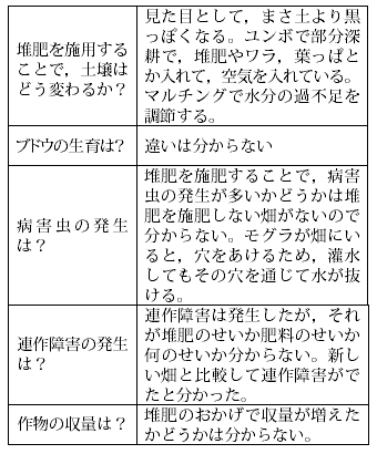 一般的に,土壌中の腐植は3%程度が良いとされており,堆肥を入れる目的は,土壌中の腐植含量を適正に保つためです。