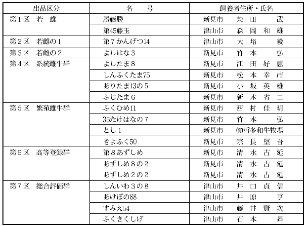 また,分娩の関係で今回出品できなかった第4区,第5区についても,7月2日に実施した巡回選抜の結果を発表し,19頭の県代表牛が決定しました。