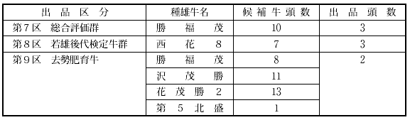 「肉牛の部」候補牛頭数