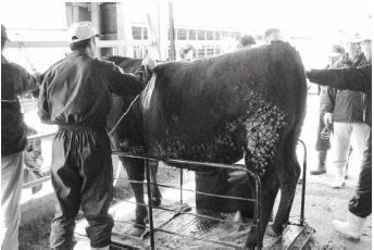 ![]() 肥育巡回風景(超音波による肉質調査) |