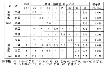 @ 寒地型牧草区(表1):昨年の10月12日にオーチャードグラスやトールフェスク,ケンタッキーブルーグラス等7草種を耕起,施肥後,単播または混播しました。今年の5月9日と6月29日に収穫調査を行い,1番草は採草利用,2番草は放牧も行い,嗜好性を調査しました(写真1)。