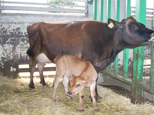 7月18日,本校では10年以上経験のなかった,生徒待望の乳牛(ジャージー牛)の出産がありました。子牛は雄牛でしたが,すくすくと成長していて,生徒は子牛の管理と親牛の搾乳に悪戦苦闘しています。