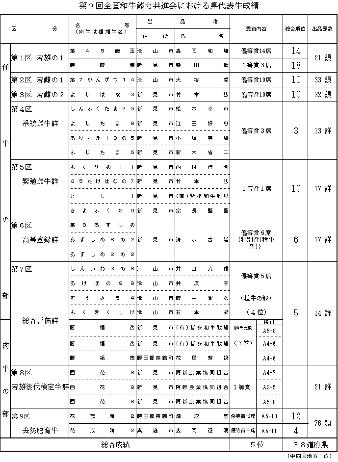 岡山県からは種牛19頭,肉牛8頭の計27頭が出品され,総合成績では宮崎,鹿児島,大分,岐阜につづく全国第5位,中四国では1位と大健闘しました。