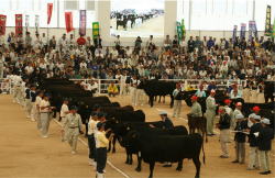 | 種牛の部出品者の皆様 | 種牛会場審査風景 |