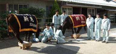 新見高校生物生産科は,岡山県和牛発祥の地である新見市にあります。「心技練磨」の精神を受け継いで,新見北高校の時代から,この地域伝統の技術「牛の碁盤乗り」を継承した牛達とその仲間達が,「畜産な毎日」に彩りを添えています。