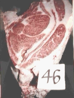 しかし,なかにロース芯の面積が小さいもの,皮下脂肪や筋肉間脂肪の厚いもの,あるいは肉色や脂肪の色に難点のあるものが少数ですけれども見受けられました。