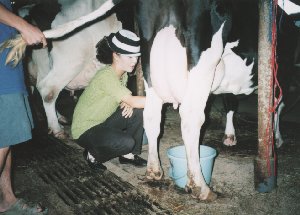 1日目は,開会式の後,酪農家での乳搾りやトラクター試乗・バラ農家の見学,夜のバーベキューパーティーを行った。女性参加者の内22名は干拓地内にファームステイした。