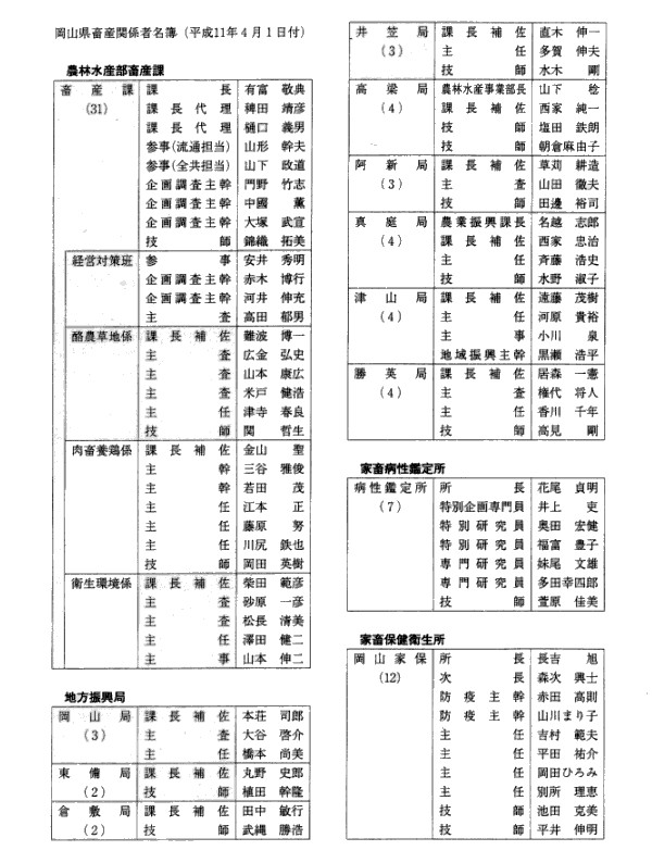 > 岡山県畜産関係者名簿(平成11年4月1日)