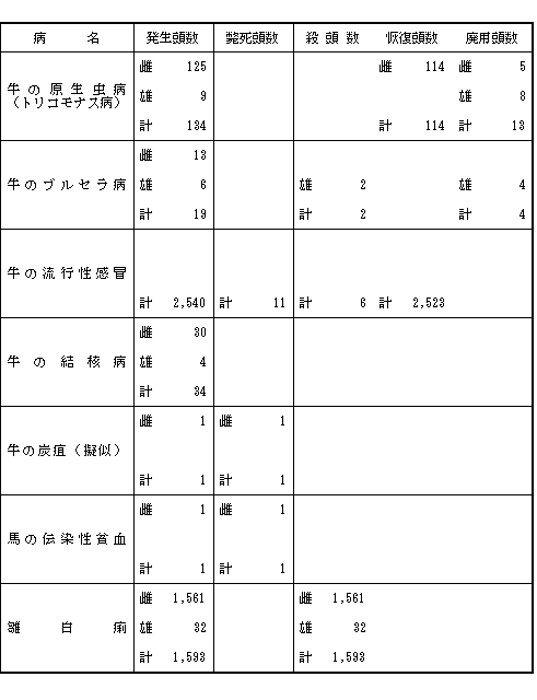 昭和24年中の家畜伝染病の発生は次の通りである。