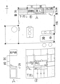等を考えて改善に当って戴きたい昨今新築される家屋を見ても,大半は在来のものと大差のないものが多いのはまことに残念なことであります。住宅は衣服や食事のように簡単に変えることができない点でも余程慎重に計画されねば悔を残すことになります。次に2,3の台所の改善例を示すから参考にして戴きたい