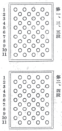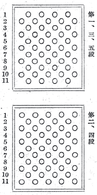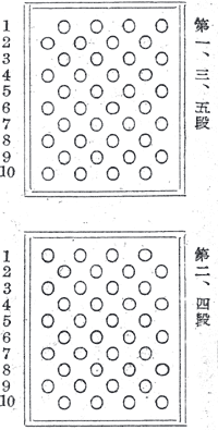 |  | (ロ)中玉の場合(第1段より第5段までは縦詰とし第6段目は残数に応じ適宜の間隔を以て横詰とすること 第1,3,5,段 |