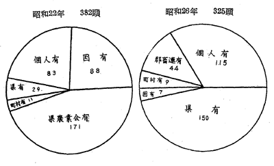 【土屋】別表で見ると頭数の推移,所有者別についても,年々相当変化してきていることが判るが当面の問題として県有の線を150頭にするか200頭の線に増加するかが差当って必要な決論ではないか。
