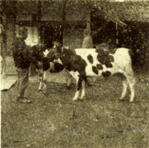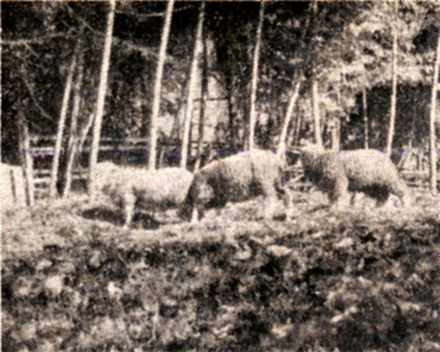 乳牛は2頭飼育されており,1頭は6月に子を産む予定である。豚2頭,山羊種雄1頭,めん羊4頭,これらの家畜はサイロ3基から生産されるエンシレージ・甘藷等で飼われ,5尺×10尺型,3基にはレンゲ3反,野草(シバ草),及び甘藷蔓1反分がつめこまれている。これだけのエンシレージで11月末から4月一杯の飼料は自給できる。めん羊は4年連続2仔を生産し,粗食と運動によるたまものだという。