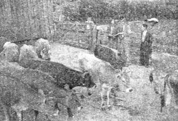 農場の入口が又一寸変わっていた。道路から農場へ入る処に自動車の通る入口と家畜の出入する入口と2つあり,自動車の通る処は巾2間,奥行1間半位の間にトロッコ用のレールが敷いてあり,家畜の入口には扉がしてある。家畜はこのレールの上には決して上らないそうでそこだけは門が無くても家畜が出る心配は無いそうである。こうしておけば自動車の出入りにいちいち扉を開閉する必要も無く便利である。家畜を外に出す時だけ扉を開いて出すわけである。