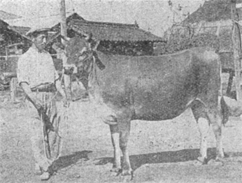 種付は昨年12月1日から畜産農場に飼育中の種牡牛をもって行いました。メスは概ね体高1.10m,体重240sを標準として種付を行いまして現在未種付のもの10頭であります。これは繁殖障害のもの2頭,未発育のもの3頭,分娩後の生理的空胎5頭でありますがこの6〜7月迄には全部種付して妊娠する見込であります。