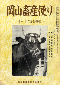 岡山県獣医畜産学会 研究発表特集 (1)導入ジャージー牛の牛蠅の発生状況 (2)トキソプラズマの動物実験の考察 (3)異型の乳熟と思われる疾病 (4)牛の尿素中毒例 (5)創傷性胃横隔膜炎の臨床例 (6)牛の創傷性心嚢炎に於ける胸腔切解手術 (7)山羊の消火器寄生虫の被害とその対策 (8)初生仔牛の脳水腫の臨床及び剖検例 (9)モルモットより分離した溶連菌 (10)牝牛の膀胱結石と誤診された膀胱癌の手術例 (11)壊疽性乳房炎の治験例 (12)蒜山地区に発生した牛の貧血病 (13)インフルエンザヴイールスの発育に及ぼす菌毒素の影響 (14)直腸脱の手術による治験例 (15)新見市南部に於ける慢性重症肝蛭症の臨床 (16)重症肝蛭牛の剖験例 (17)牛の斑状歯(第1報) (18)牛馬に於ける水泡反応による予後判定