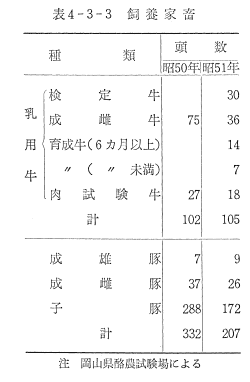 瀬戸農業高校畜産科と勝間田農業高校畜産科は,昭和28年(1953)に設置され,日本原高校酪農科は,37年(1962)に設置されたもので,定員はいずれも30名となっている。