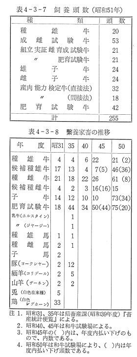 昭和28年(1953)2月,農地経済部(6課)畜産課となり,同32年(1957)3月1日,農林部畜産課となった。昭和38年(1963)5月当時の畜産課には,管理,経済,酪農,飼料,畜産および衛生の6係があった。