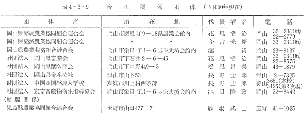 その後,31年(1956)9月,岡山県家畜人工授精師協会が設立され,33年(1958)には岡山県獣医畜産事業協同組合が設立され,35年(1960)7月には岡山県草地協会が設立され,事務所を県畜産課内に置いている。