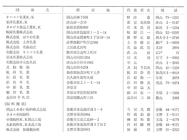 県段階においては,岡山県酪農協会が,昭和24年(1949)4月に設立され,県庁内に事務所を設けていた。この協会は,その後生乳の集出荷,乳価問題など,急速に発展する酪農事業に対応するため,昭和34年(1959)2月1日設立された岡山県酪農々業協同組合連合会(県酪農)に,すべてを托して解散した。