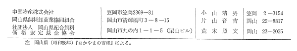 岡山県(昭和50年)の『おかやまの畜産』により,昭和50年(1975)における畜産関係団体のうち,県を区域とする法人等おもなものを次に表示しよう。