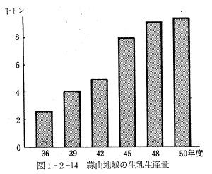 蒜山酪農業協同組合は,昭和50年(1975)2月から,家畜改良事業団の乳用牛群改良推進事業に参加して,乳量検定をうけた。その成績を35年度と比較すると,乳量は大幅に向上していて,その平均乳量は,3,540キロ,51年(1976)は,3,679