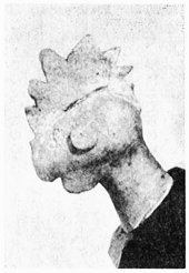 しかしながら,神話の時代か,縄文・弥生式文化の年代ににわとりを家畜として飼っていたことは,疑いのないところで,このことは,古い時代の古墳が県内各地で数多く発見され,これらの古墳から出てくる遺物の中に,写真のような鶏埴輪があることで明らかにされている。