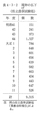 明治41年(1908)から同場でおこなってきた種卵の払下げ業務も,大正11年(1922)までの15年間で廃止し,その後は岡山県種畜場がこれを引きつぐことになった。