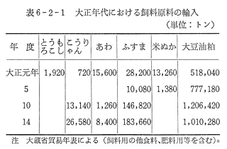 ちなみに,この時代における食糧,肥料用を含めた飼料原料の輸入状況は表6−2−1のとおりである。