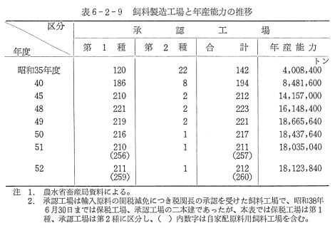 一方,ブロイラー用配合飼料の生産は,30年代後半から養豚用,肉牛用配合飼料とともに年々増加していることは,食肉に対する需要が急増したためと思われる。